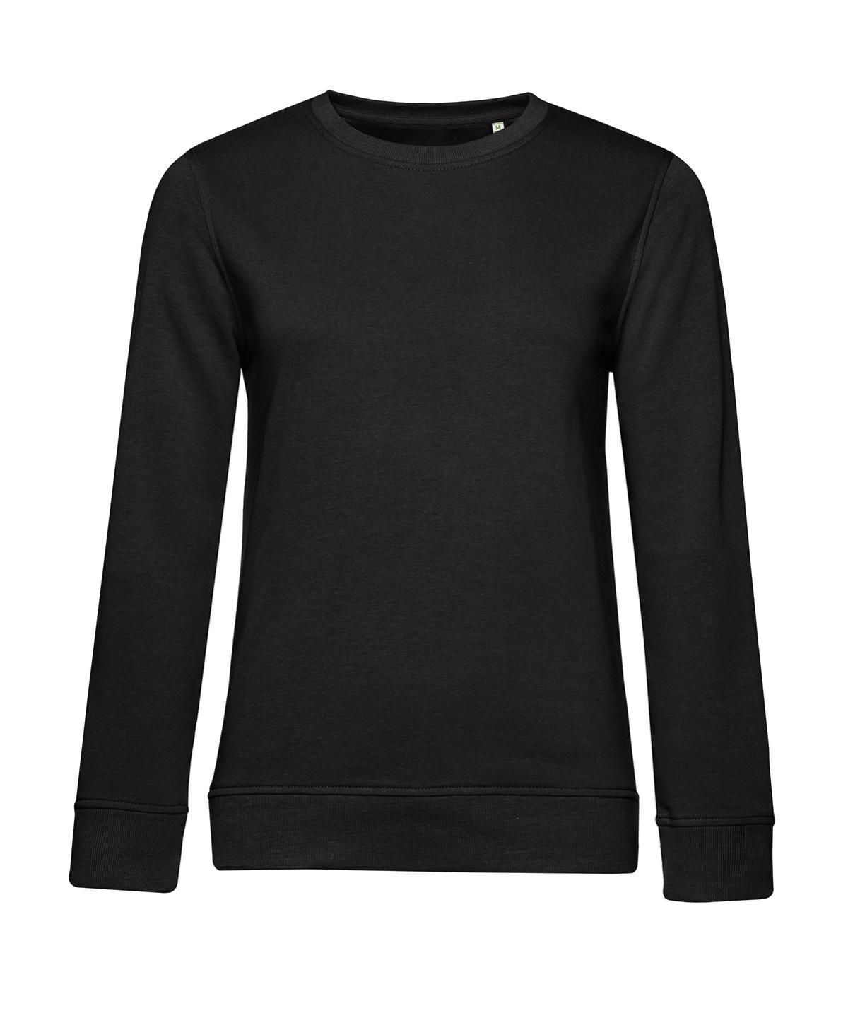 - Trendy organic and organic in conversion crew neck sweatshirt for women. Retail fashion-oriented look and feel. Strong styling with great fit and perfect length. Side seams. Identical colours for men and women. Easy branding – B&C No Label Solution. Inside single Jersey half moon in back. Qualitative herringbone neck tape.