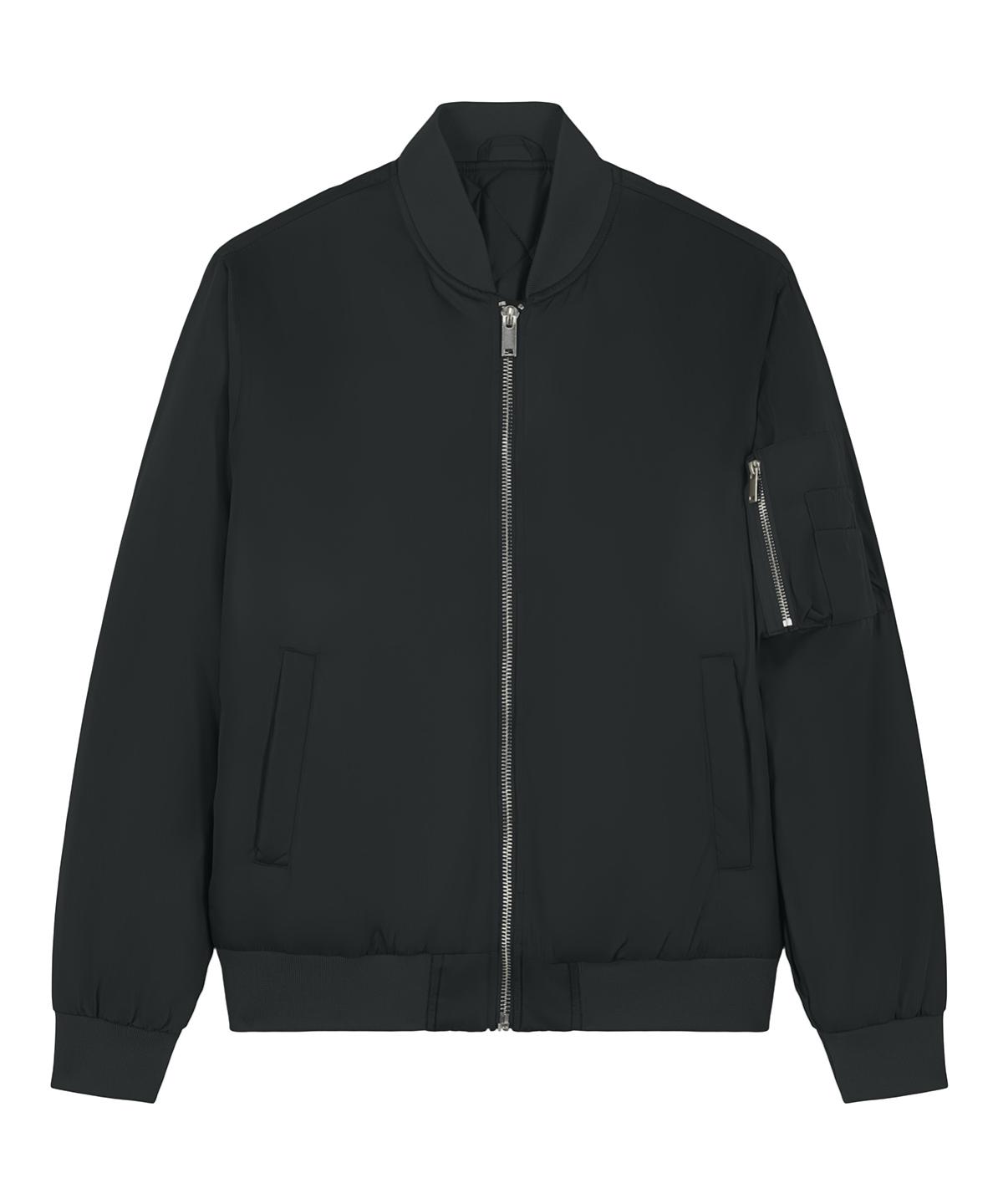 Premium unisex bomber jacket in 100% recycled polyester. Timeless, versatile style in a medium fit. Improved padding and decoration results. Ideal for music merchandise..