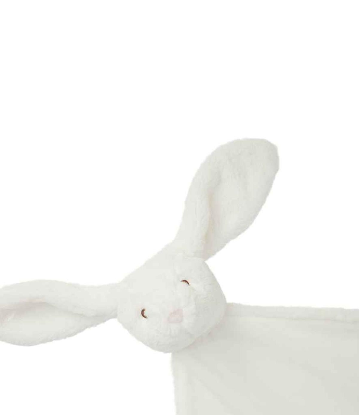 - White bunny has white blanket.