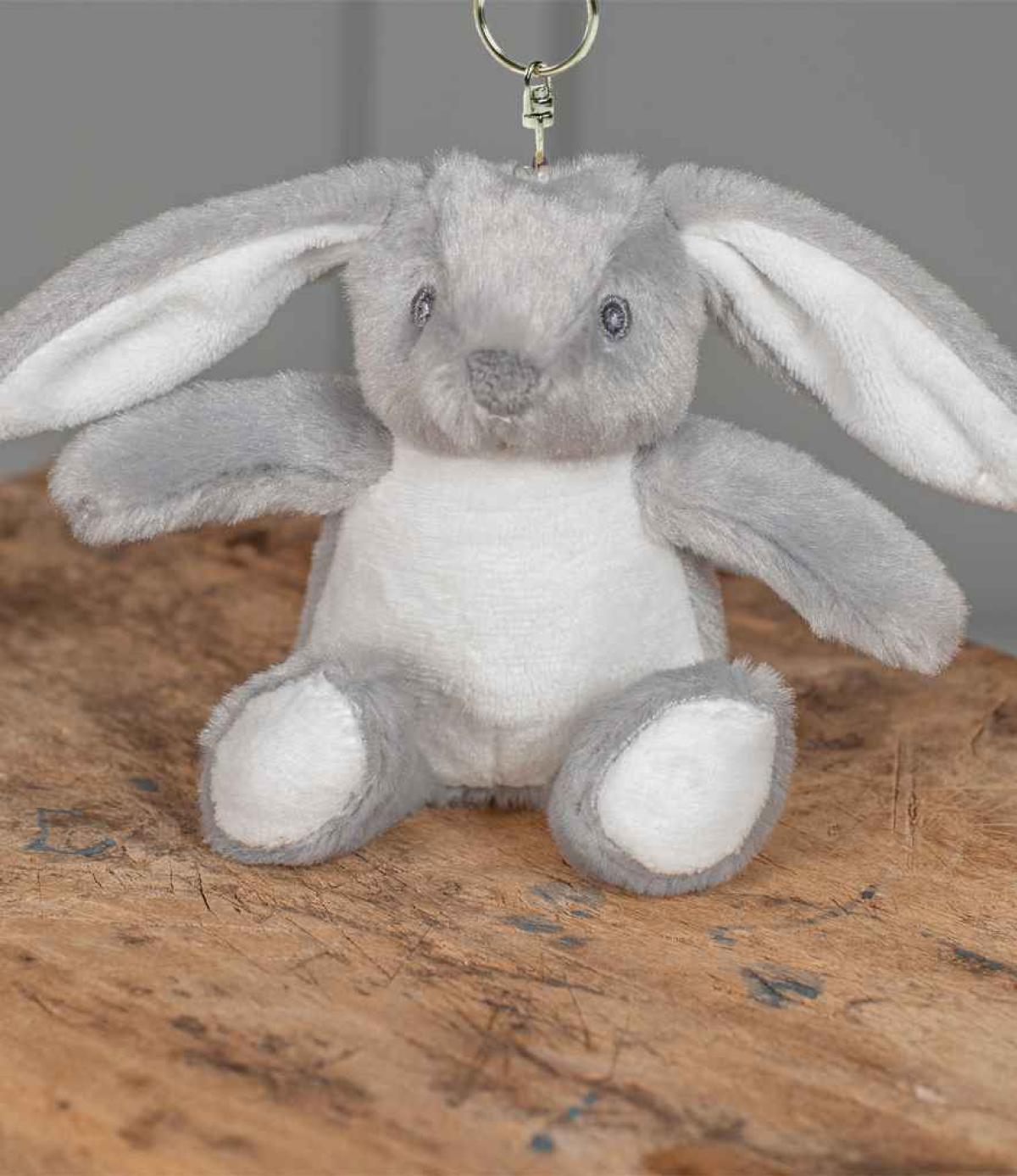 - Grey coloured bunny with floppy ears.
