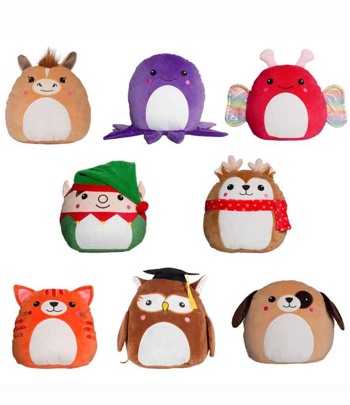 • Soft plush animal toys - butterfly, christmas deer, dog, ginger cat, octopus, owl, pony, pumpkin, penguin and christmas tree.