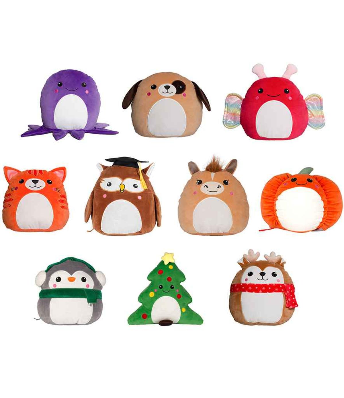 - Soft plush animal toys - butterfly, christmas deer, dog, ginger cat, octopus, owl, pony, pumpkin, penguin and christmas tree.